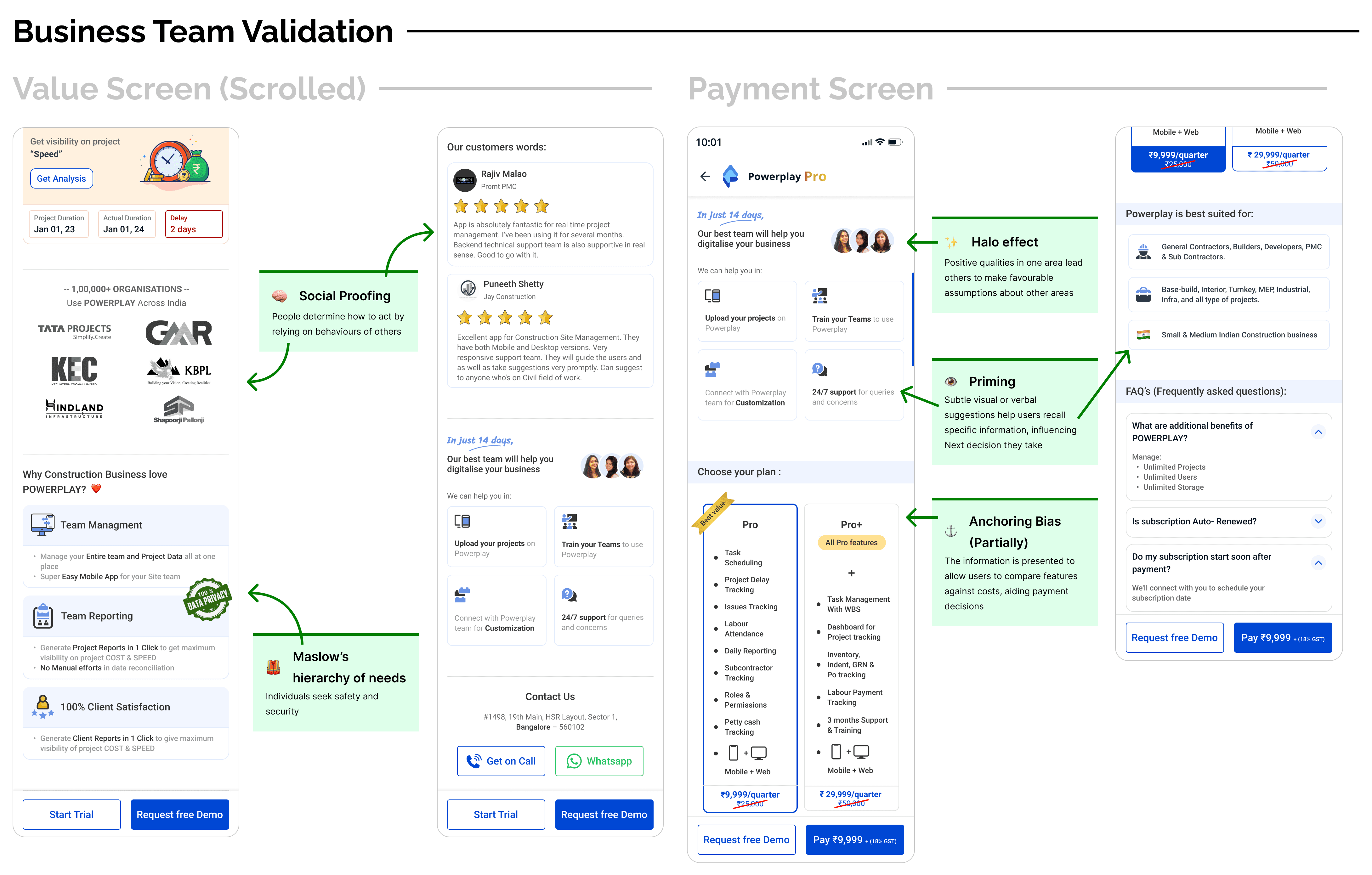 The second set of value screens built within the Powerplay module, before the payment page, focused more on what Powerplay was providing rather than addressing the problems of founders that the product could solve.